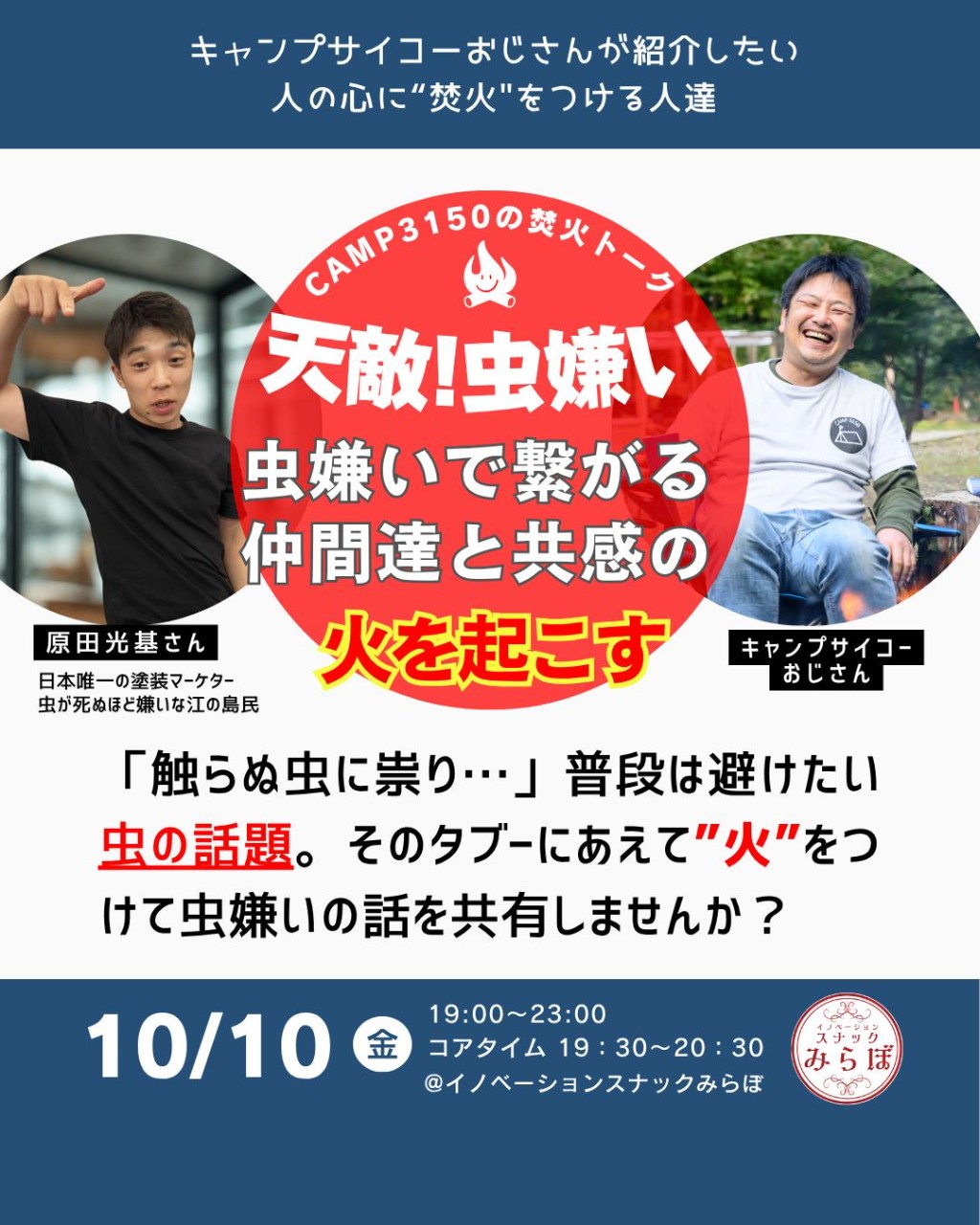 CAMP3150の焚火トーク”天敵!虫嫌い~虫嫌いで繋がる仲間達と共感の火を起こす🔥~”