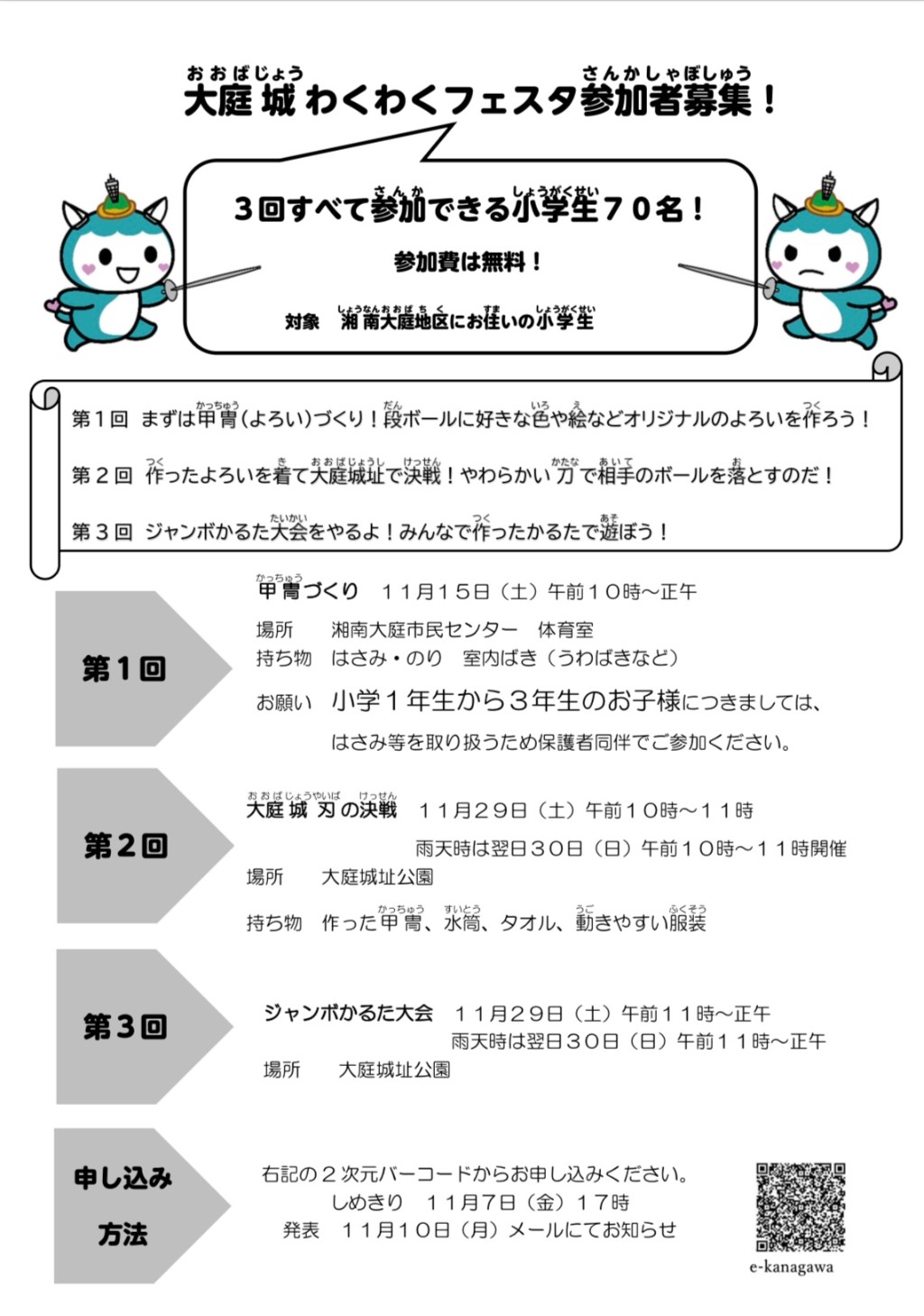 11月29日開催の「大庭城わくわくフェスタ」大庭城刃の決戦! ワークショップで甲冑作り 参加費は無料 申し込み締め切り後のお問い合わせも歓迎♪