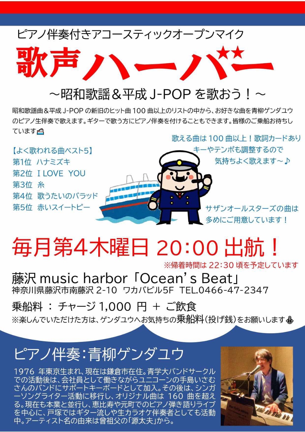 「歌声ハーバー」ピアノ伴奏付きのアコースティックオープンマイク