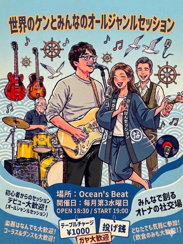 毎月第3水曜日は 世界のナベケンのオールジャンルセッションですよー‼️ ジャンルを気にしない音楽の祭典! 敷居の低い誰でもが楽しめるイベントです 19:00スタート セッションデビューや歌うだけ、楽器演奏だけの参加大歓迎です もちろん盛上隊もよろしくお願いいたします😅 料金:TC1,000円+飲食代 楽しんでいただけるので投げ銭を是非‼️👍