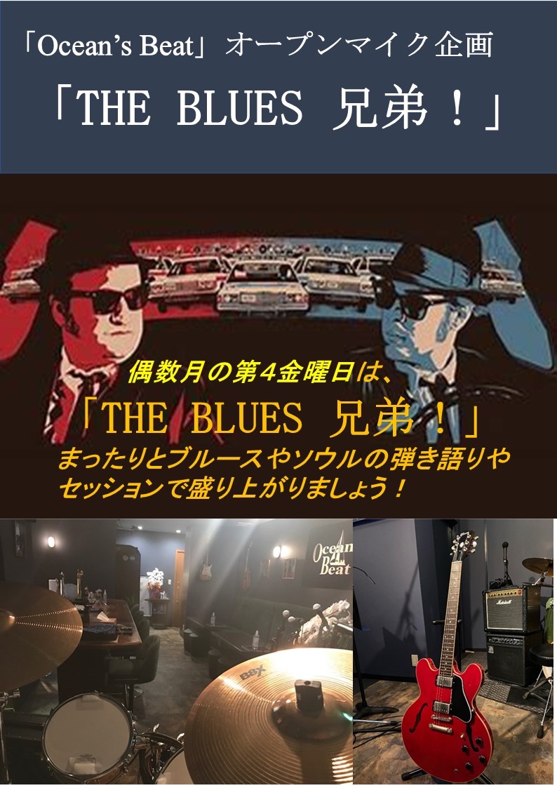 偶数月第4金曜日に変わりました 「The Blues兄弟」 Blues & Soulのオープンマイクですよ! BBキング・Eクラプトン・ブルースブラザーズ等、みんなでまったり、熱くSESSIONで楽しみませんか❓ お1人で・友達と・もちろんバンドで参加も大歓迎! 藤沢の夜にブルース&ソウルを奏でましょう。お待ちしてまーす! 楽器での参加もOKです。 BLUES大好き人間がお供してくれます。 料金: TC¥1,000 + Drink,Food代