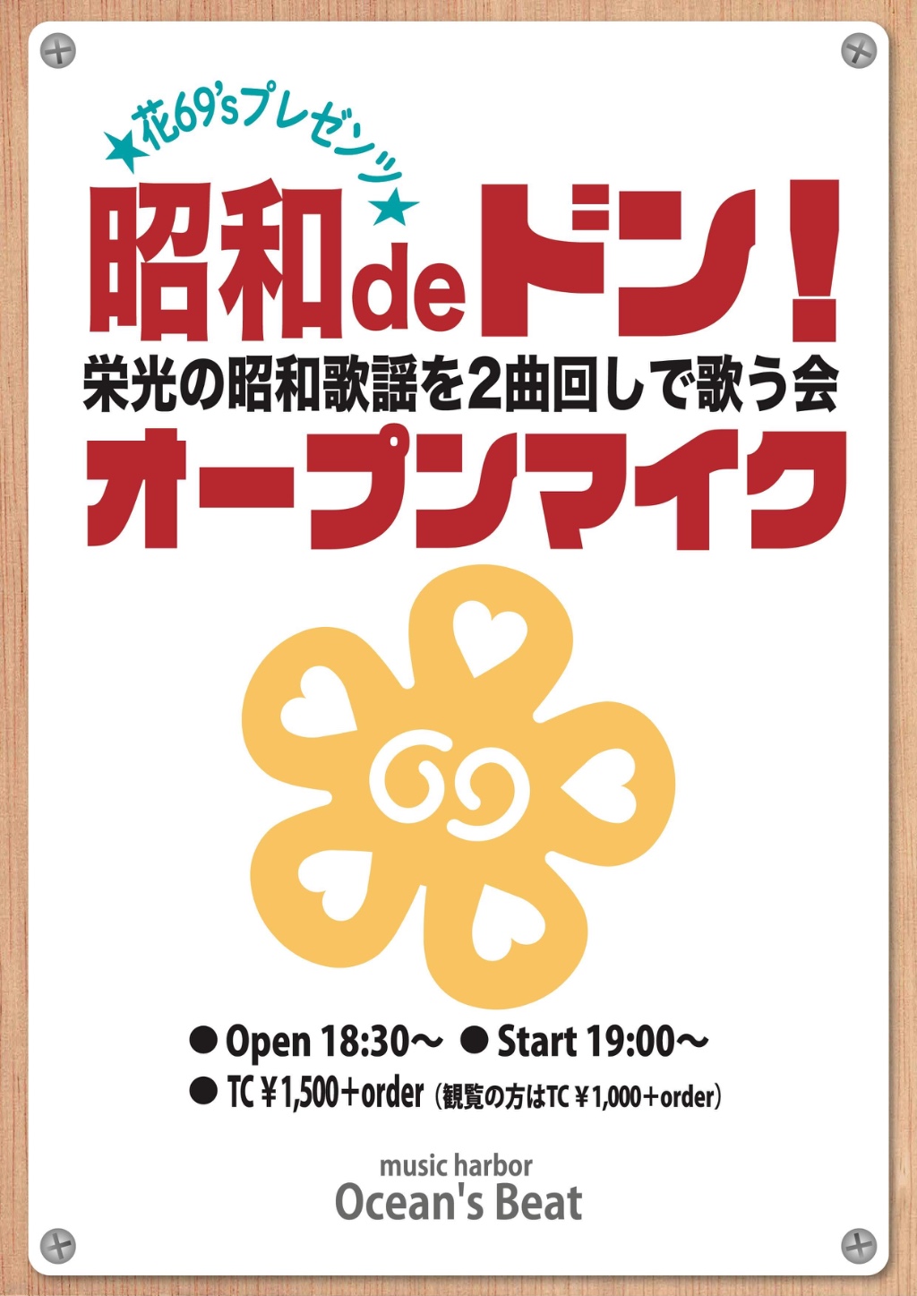 花69’spresenceの「昭和deドン!」 18:30オープン 19:00スタート