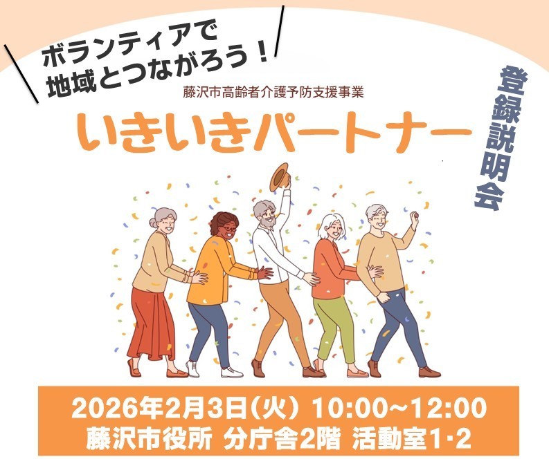 いきいきパートナー事業とは 藤沢市在住の65歳以上の方が、指定の施設でボランティア活動をするとポイントがもらえる制度。おおむね1時間以上のボランティア活動につき、1ポイントが付与されて年間最大50ポイント(5,000円)まで換金できます。 65歳以上の方の社会参加を促し、ご自身の介護予防につなげるとともに、地域活動の活性化を目的としています!