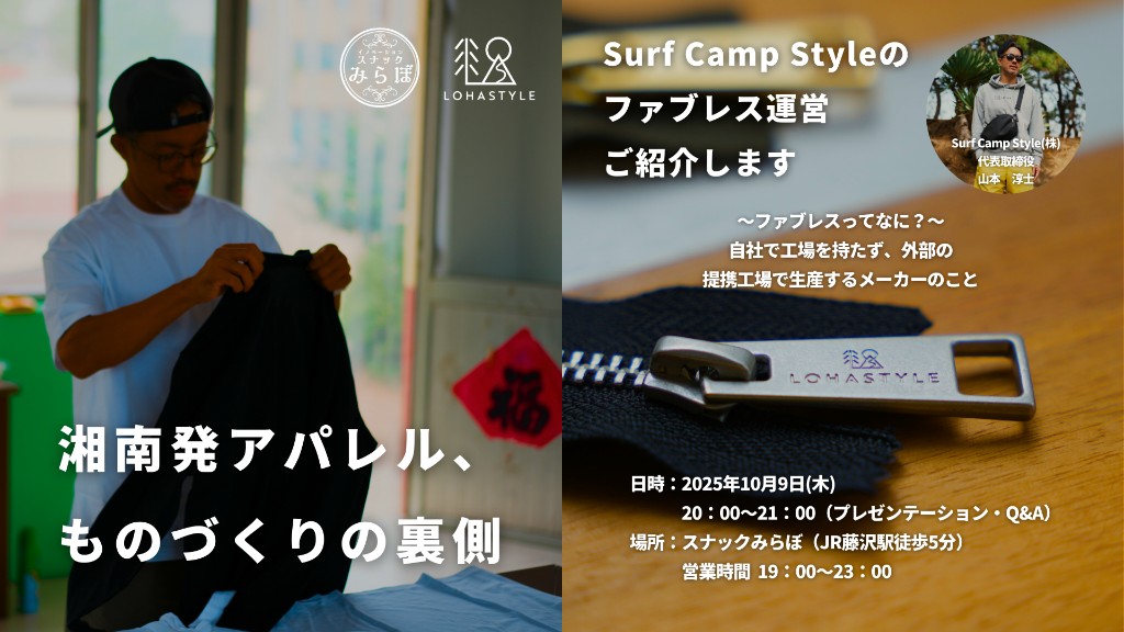 湘南発アパレル、ものづくりの裏側ーSurf Camp Styleのファブレス運営ご紹介しますー