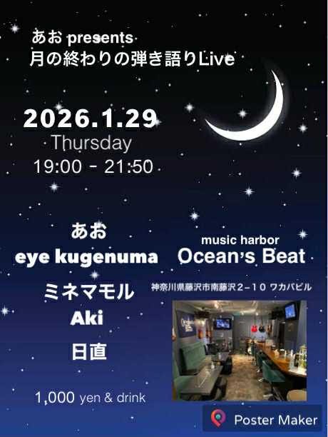 あおさん企画のLIVE 第5の木曜日に開催です。 18:00オープン 19:00スタート 出演者(敬称略) その他観覧・聴講・応援は大歓迎です。