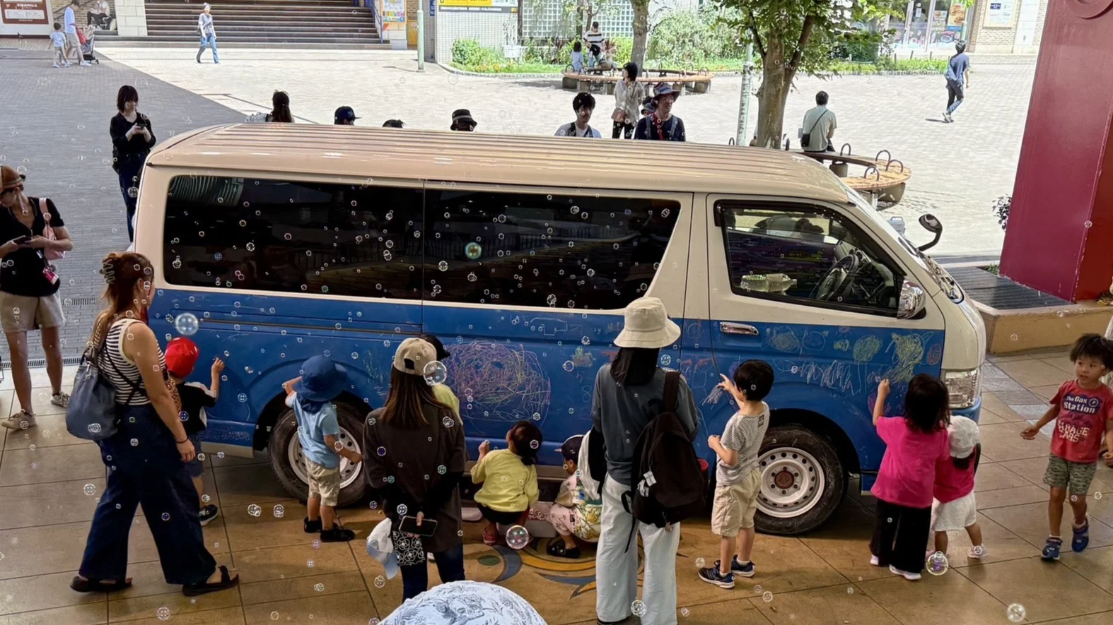 いつもはイタズラできない車に自由に描けるという体験が、子供から大人まで大人気です。