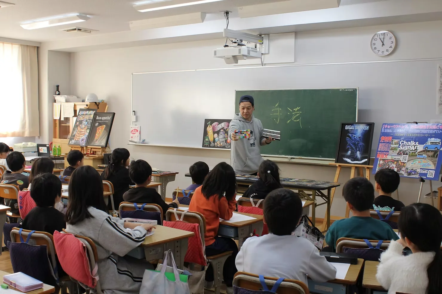 独自のオンラインスクール「チョーク小学校」の運営にとどまらず、活動の場は全国の小・中学校への出張授業や技法指導へと広がっています。